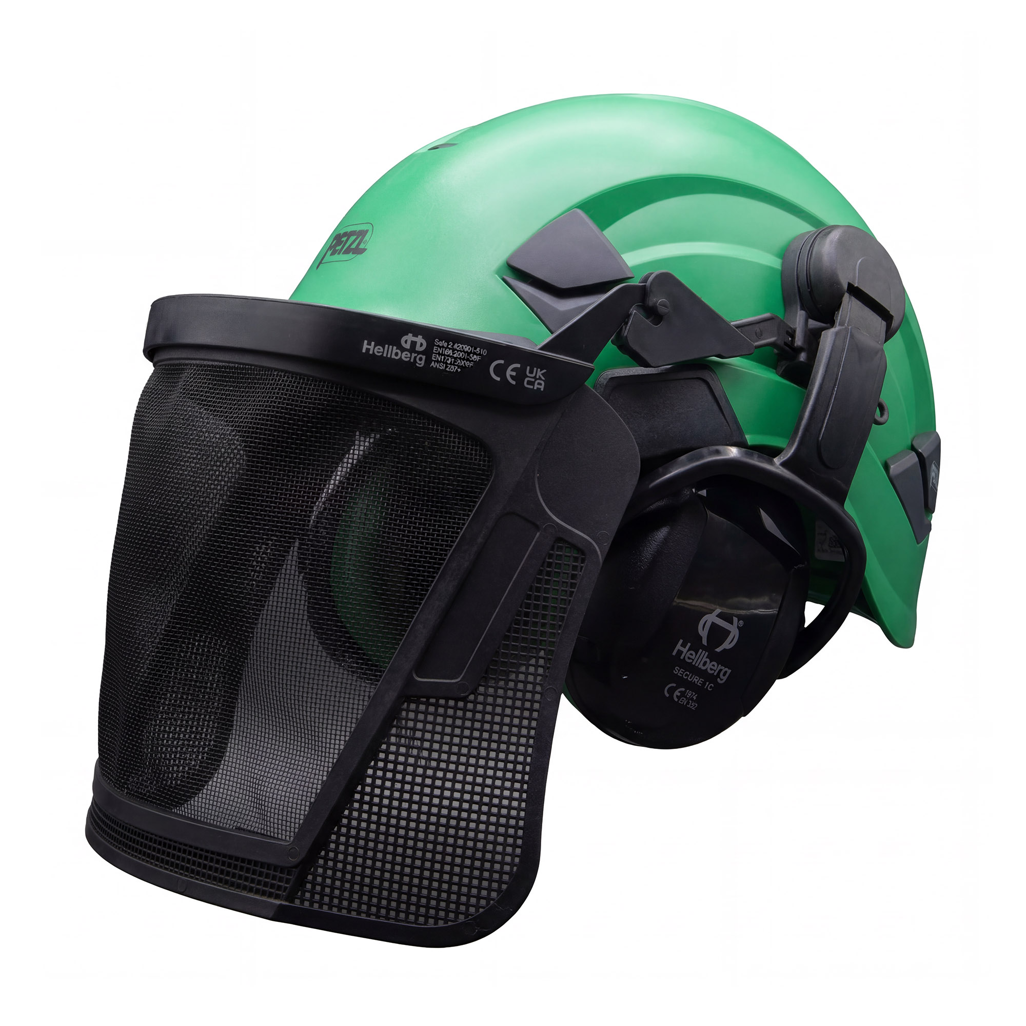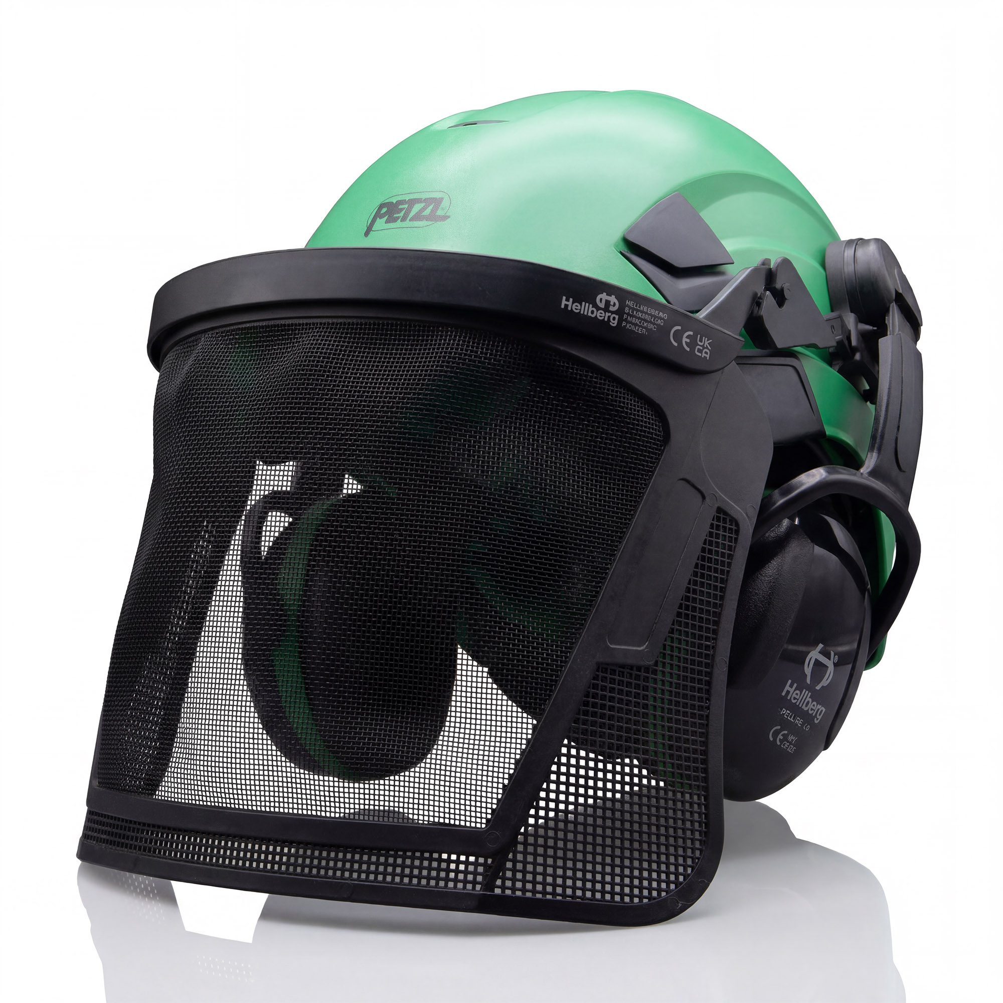 A pre-assembled Petzl Climbing Helmet with Ear Defenders and Visor combination. No VAT due to accessories being pre-fitted.